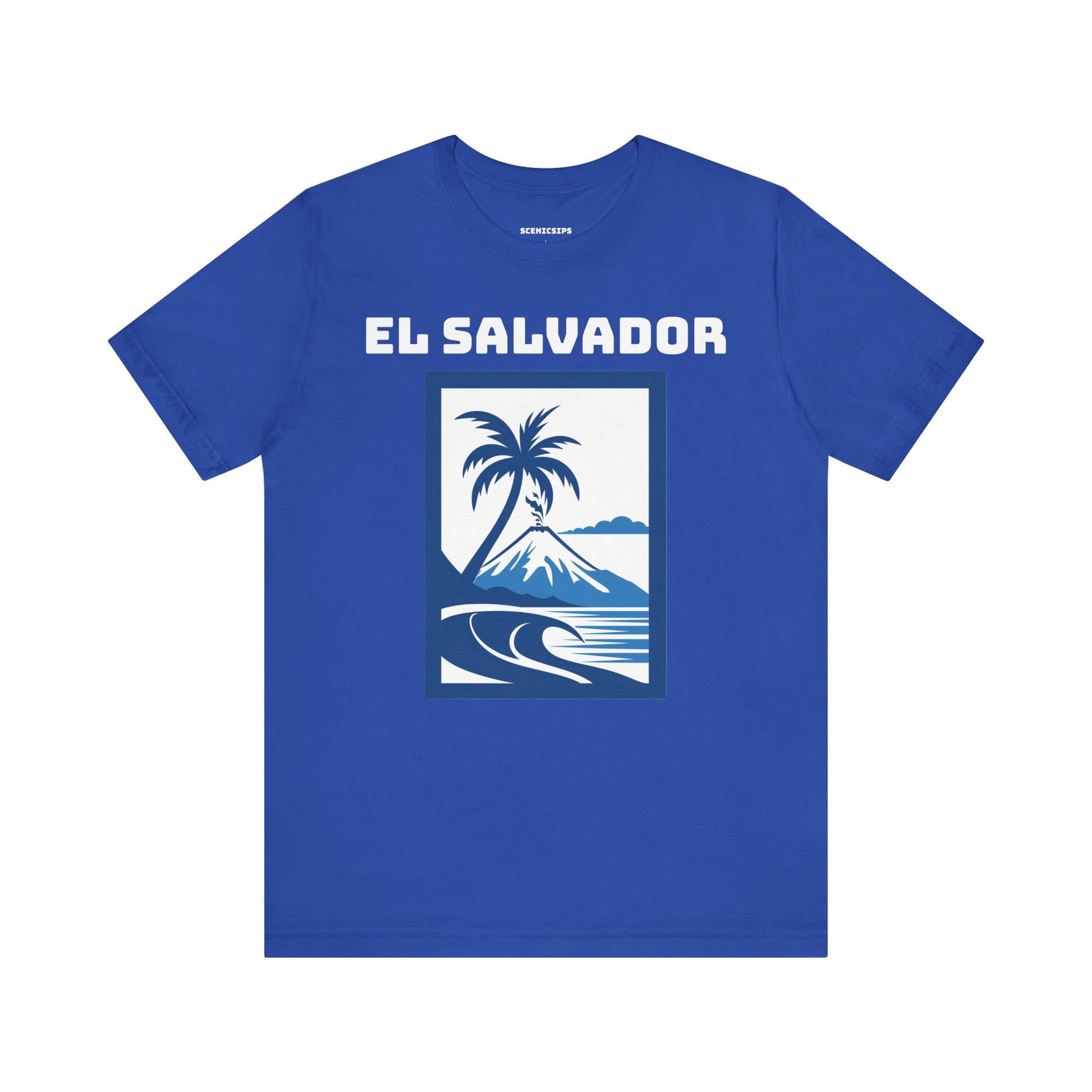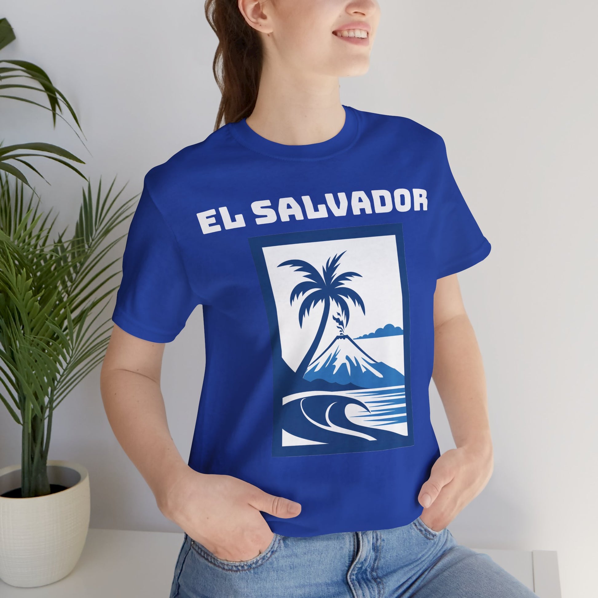 From black sand beaches to towering volcanoes, El Salvador is where the coast and mountains shake hands. This design captures that contrast — waves rolling in, a volcano rising beyond, and the kind of stillness that only comes with salty air and distant thunder.